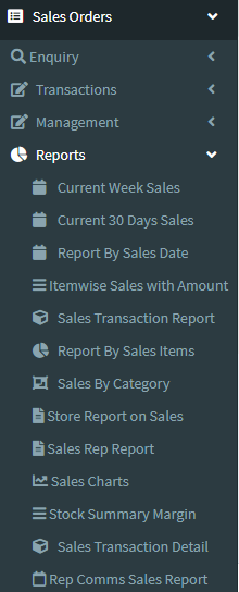 1. Go to the back-office and click on the option Sales Orders - Reports and then click on the option Rep Comms Sales Report.