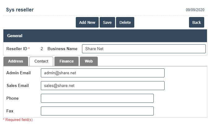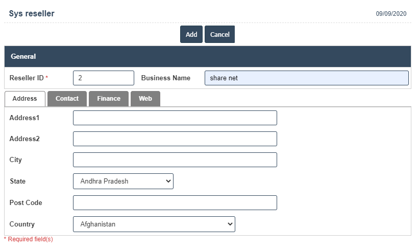 6. Once you have completed the Resellers details, click the Add button as shown below.