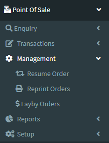 1. Go to the back-office and click on the option Point Of Sale - Management and then click on the option Resume Order.