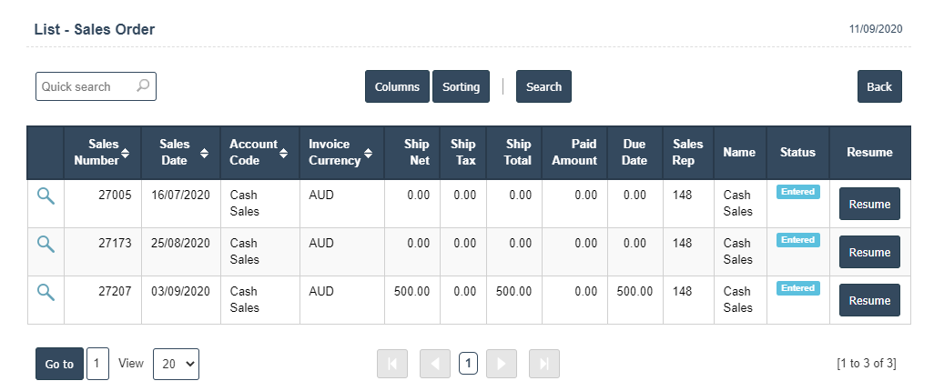 2. Click on i choose Sales number 27207 Resume button.