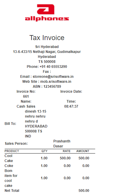 7.After that it will displays the "Tax Invoice" print.