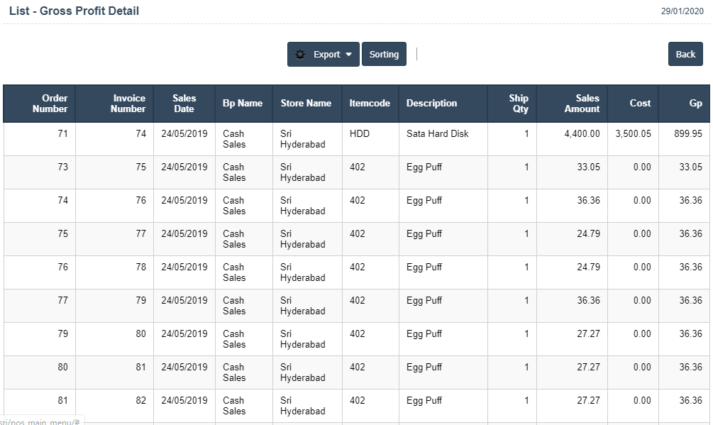 1. Go to the back-office and click on the option Point of Sale – Reports and then click on the option Sales Gross Profit Details
