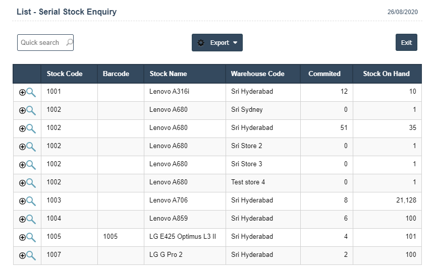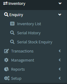 1. Go to the back-office and click on the option Inventory - Enquiry and then click on the option Serial Stock Enquiry.