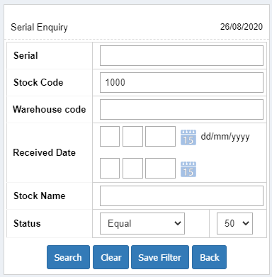 1. Go to the back-office and click on the option Point Of Sale - Enquiry and then click on the option Serial Enquiry.