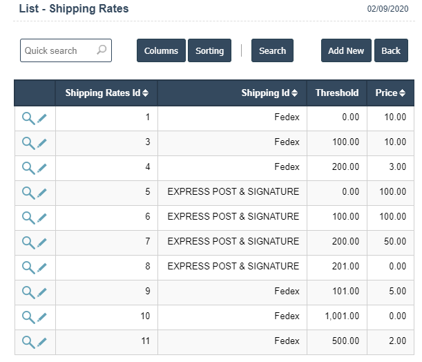 2. Add New : This Button is used to Add New Shipping Rates.