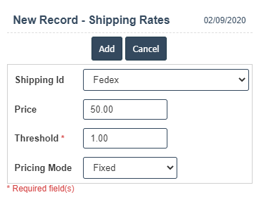 6. Once you have completed the Shipping Rates details, click the Add button as shown below.