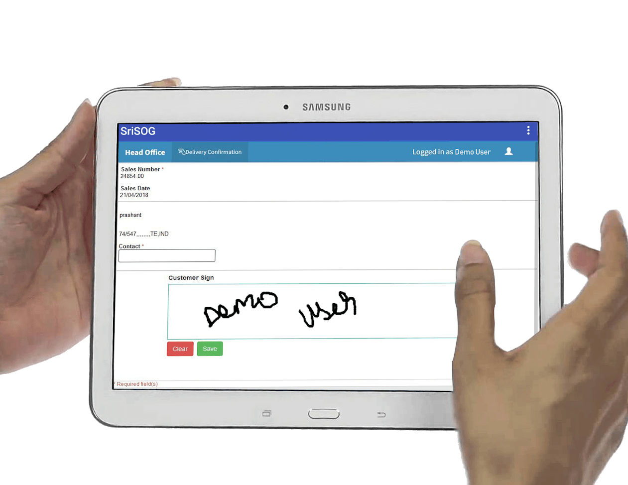 SriSOG enables any user in the branch network to obtain a customers electronic signature for goods delivered to customer at their premises or on site or even when picking up from the store.