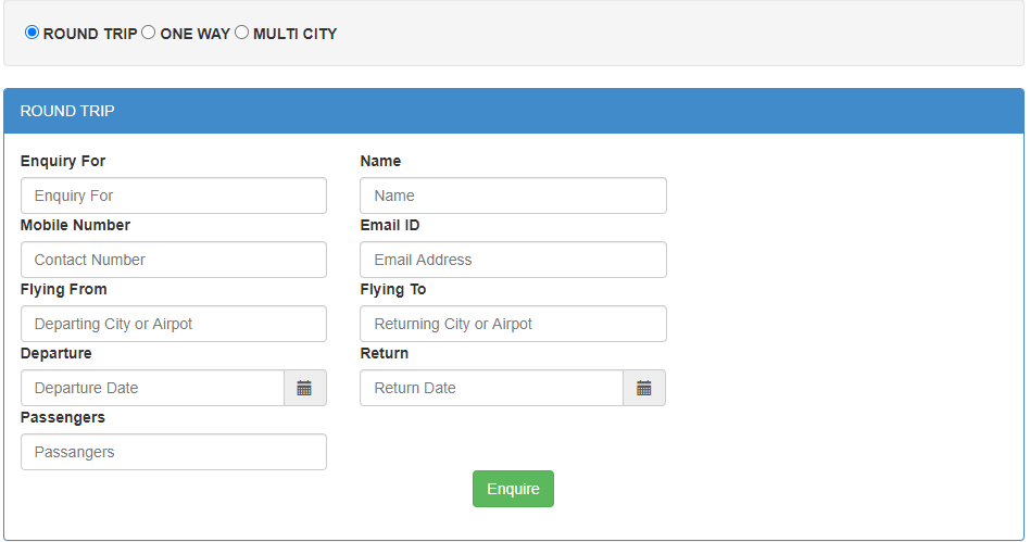 The Booking enquiry allows the user to search for flights that are available between the two travel cities, namely the “Departure city” and “Returning city”. When the user chooses the information about the flight, flight details are shown as: