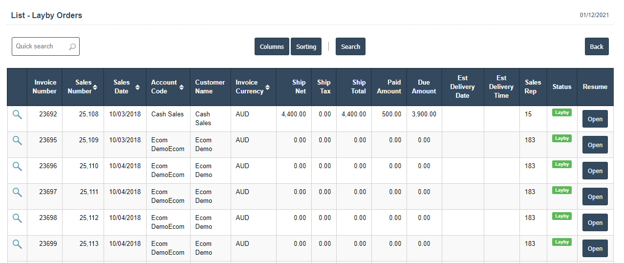 - Lay by Order : A Lay-By sale refers to customers who pay a deposit on a particular item and pays the remaining amount of the purchased goods at a later date – generally inconsistent installments. Once all payments have been made and the goods have been paid in full, the customer will then be able to receive the goods.