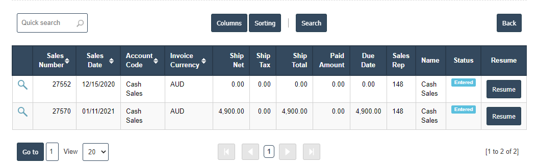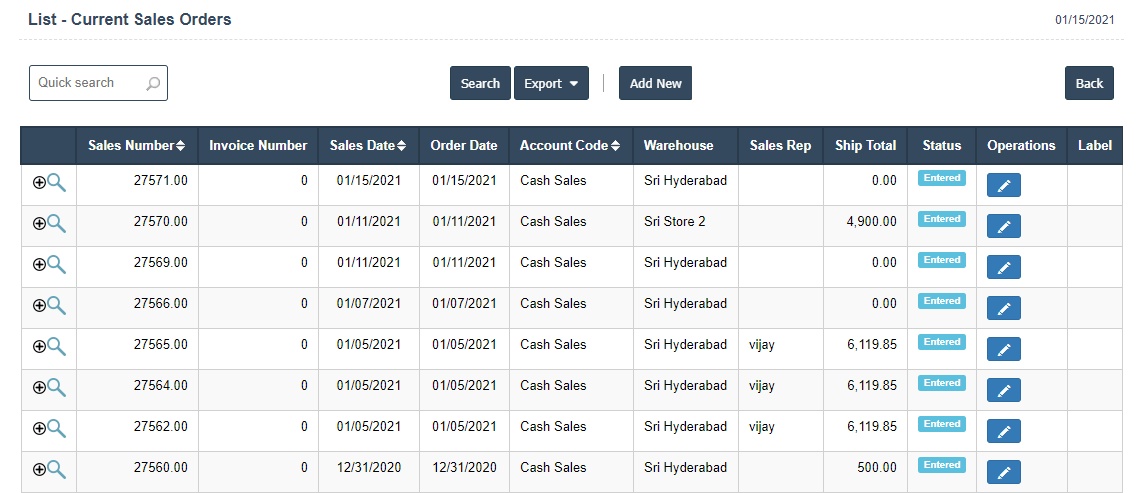 - List of Current sales orders