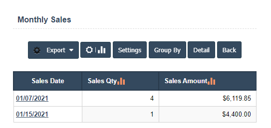 - Product wise monthly report: Product wise monthly sales is the total sales revenue for the product wise monthly report