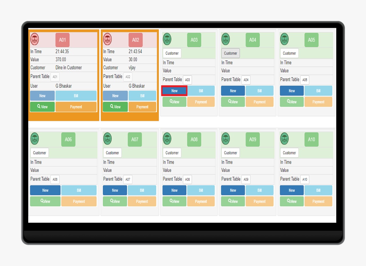 3. Operations SriPOS for Restaurants Provide a Graphical user interface to view the status od all tables within the establishment. All table are completely customizable and can facilitate the configuration of many different functions like Dine in with table Categories & Take Away. Each Colour represents a different status for the table, which can be custom designed..