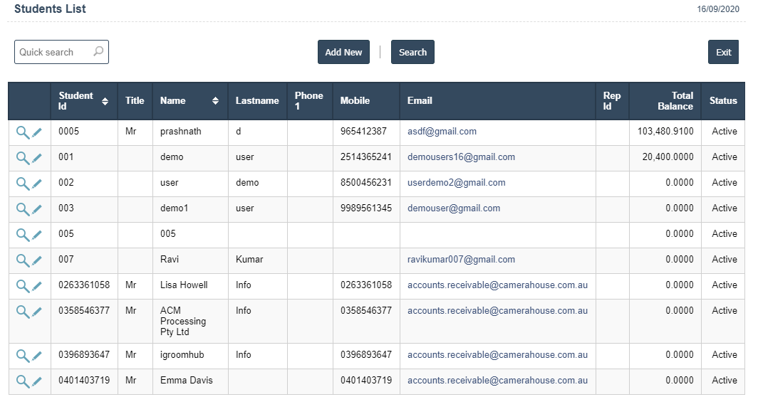 2.Add New : This Button is used for Adding New Student.