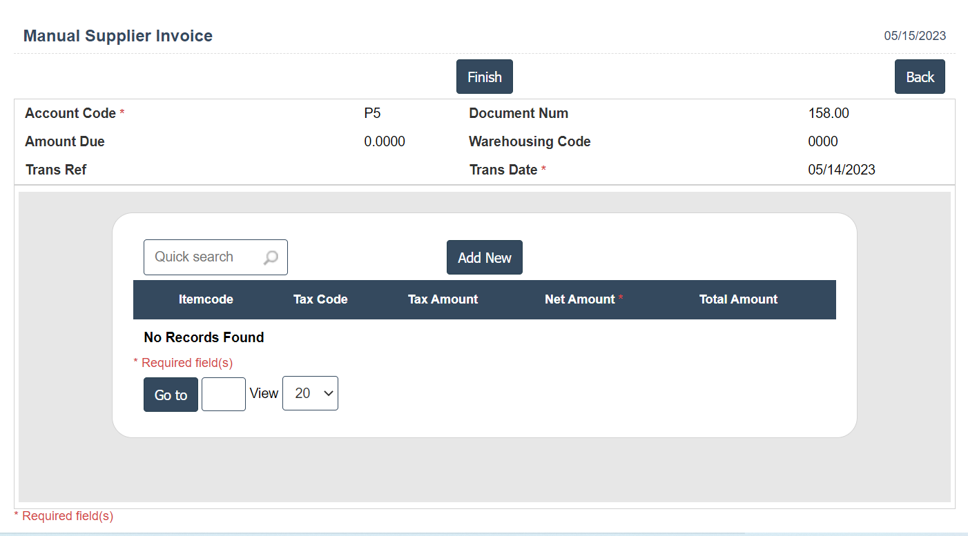 3. New : This Button is used to Adding New Supplier Transaction details.