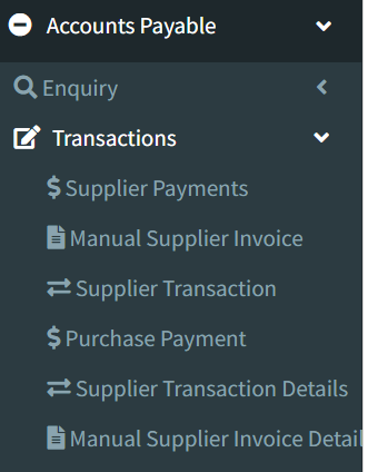 1.Go to the back-office and click on the option Accounts Payable - Transactions and then click on the option Supplier Transcaction.