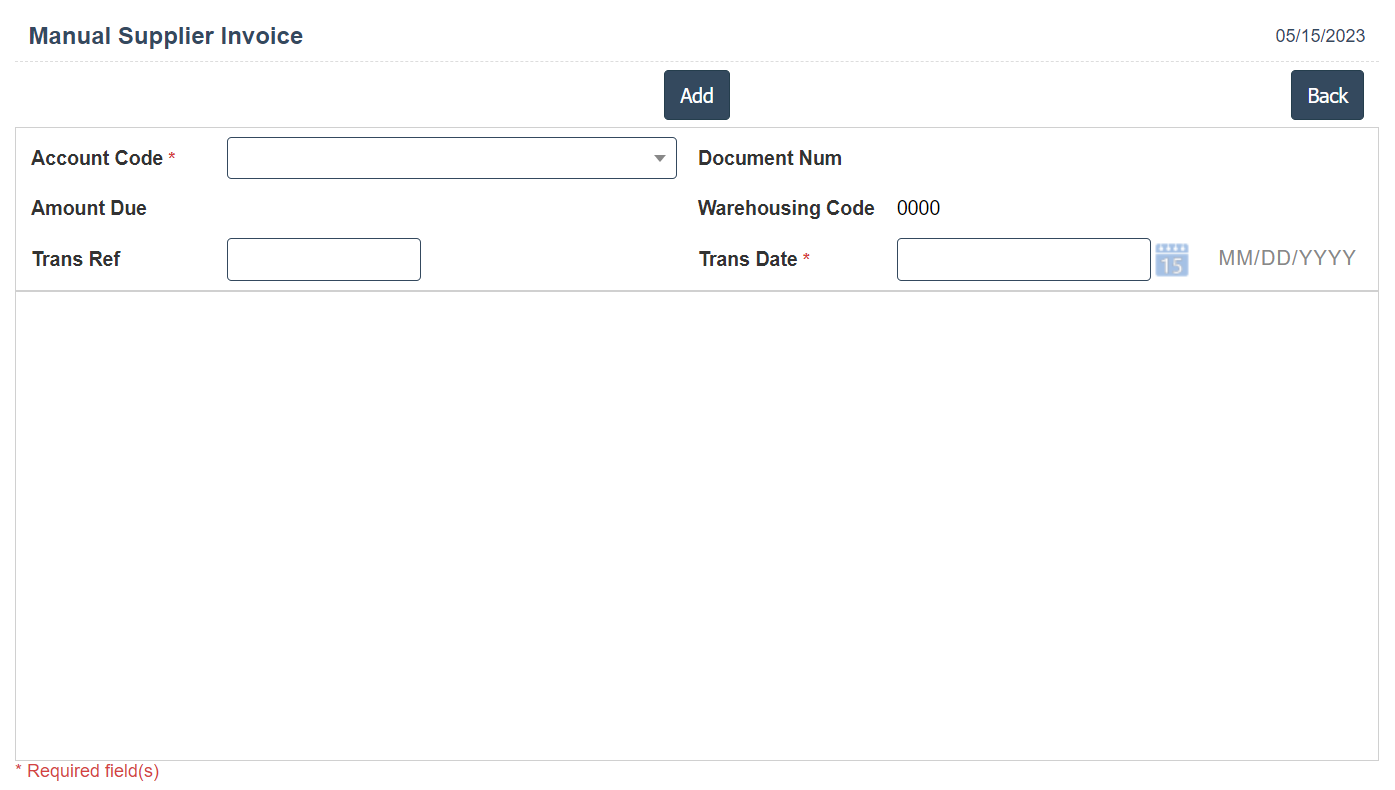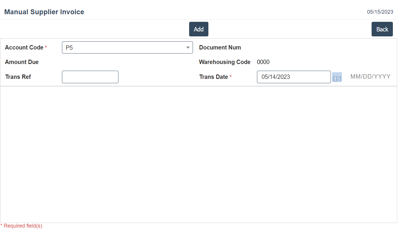 5. In Above image enter the Account code and Trans Ref then click on Add Button then it will displays the following image.