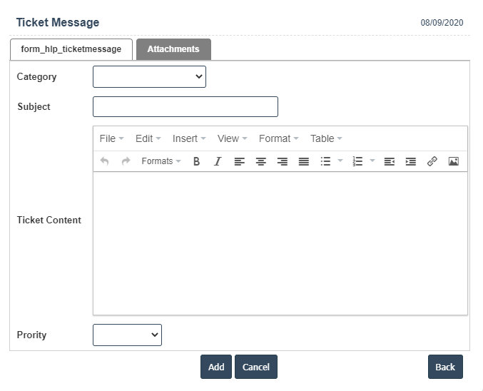 6. Once you have completed the Ticket Message details, clicking the Add button as shown below.