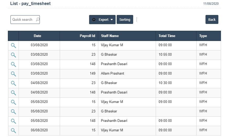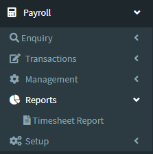 1. Go to the back-office and click on the option Payroll - Reports and then click on the option Timesheet Report.