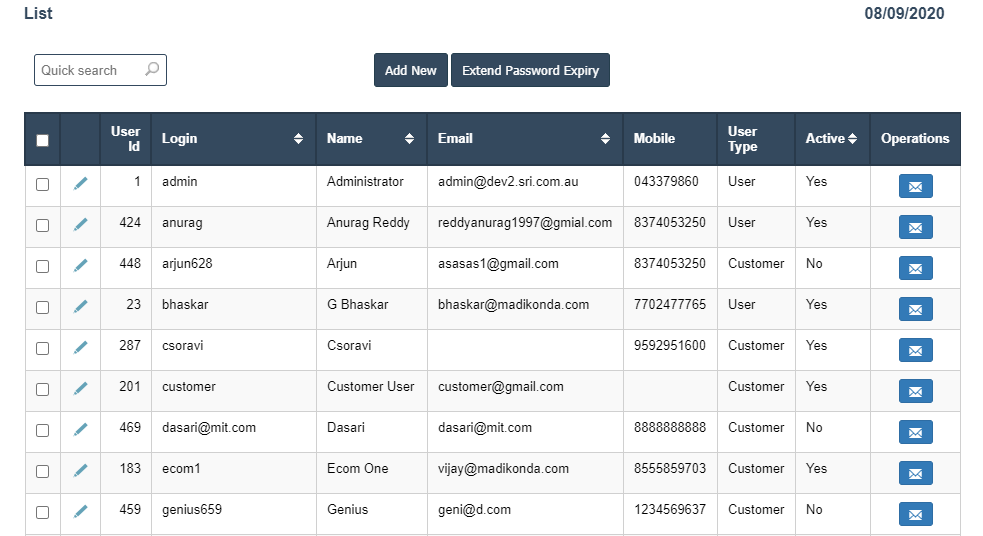 7.Extend Password Expiry:This Button is used for Extend the Password for User Security.