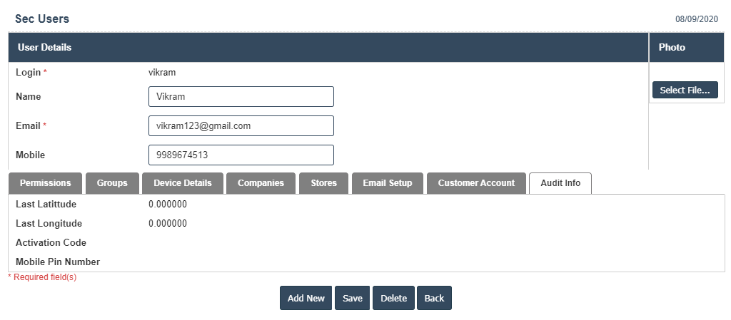 6.Add New : This Button is used for "Add" the New user