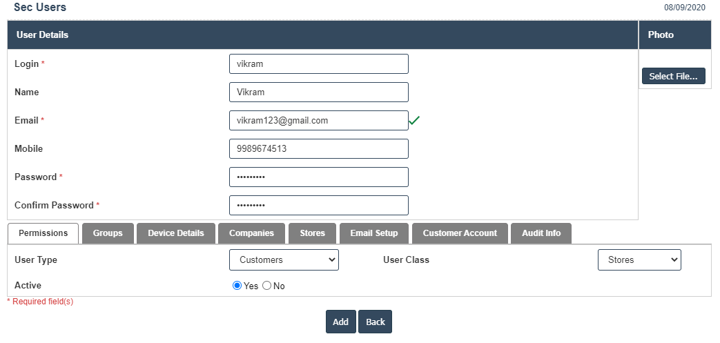 24.Then select company store id ,supervisor as yes and store status as active and then click on save now new user is added.