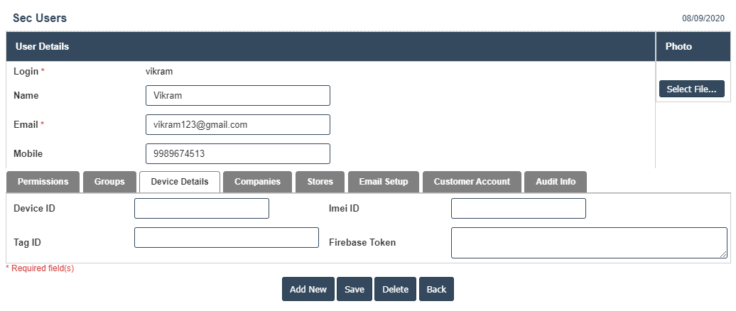 15. After entering all details click on Save button and go for the next field Device Details, it will display device id and imei id,then go for the next field groups